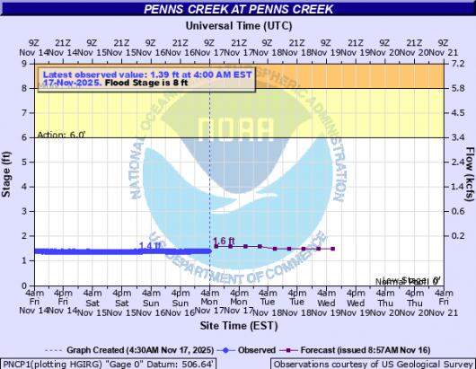 Penns Creek Gauge Pncp1 River And Lake Levels